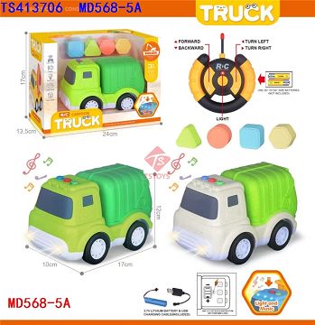 产品名称: 27MHz 四通带灯光音乐遥控卡通环卫车包电