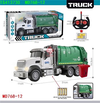 产品名称: 27MHz 1:12四通带前车灯遥控垃圾环卫车(不包电)
