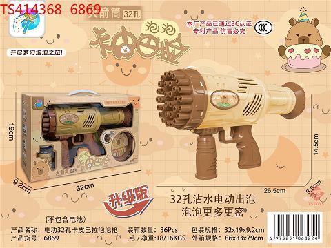 产品名称: 电动32孔卡皮巴拉火箭筒泡泡机 (4*AA不包电)