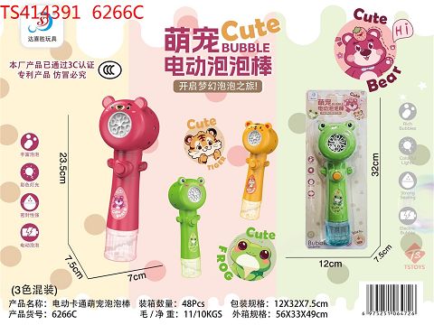 产品名称: 电动萌宠拉泡泡棒 带灯光 配1瓶60ML泡泡水 4*AA不包电