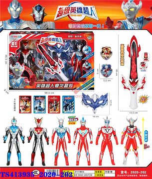 产品名称: 31.5CM超级英雄超人(声光)+火炎剑(声光)+眼镜+盾+卡片 3款混装