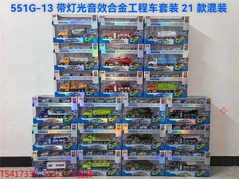 产品名称: 1:28合金声光工程车加6只小车2个弹射器套装